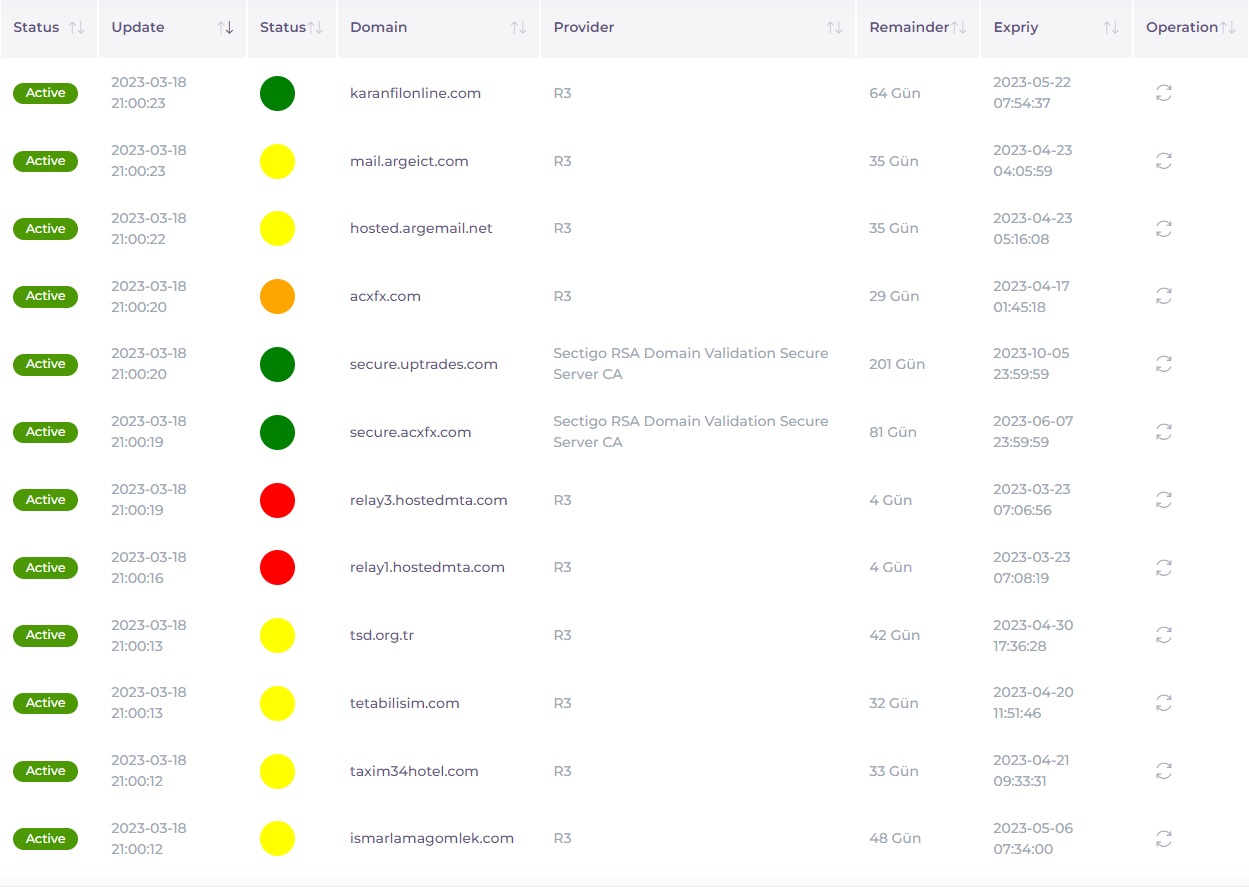 Your domain SSL certificate expiration date is tracked, and you will receive continuous warnings and notifications about it.